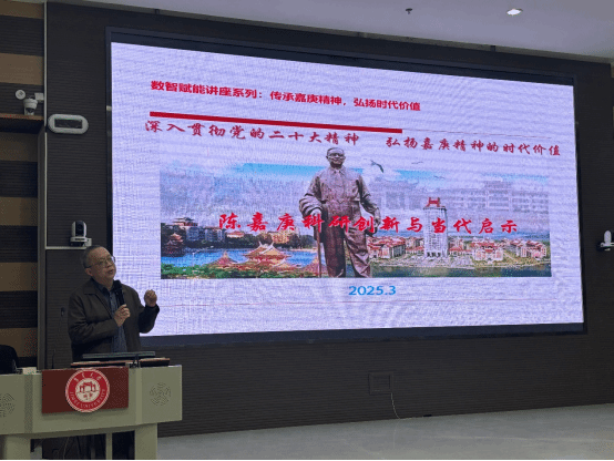 2025年3月17日,计算机工程学院在建发楼0211报告厅举办了数智赋能讲座系列:“传承嘉庚精神,弘扬时代价值——陈嘉庚重视科研勇于创新的思想与实践”讲座。讲座主讲人为集美大学图书馆廖永健,他以详实史料为基础,全面阐释了嘉庚精神作为中华民族精神耀眼光谱的深刻内涵,并指出“创新”和“奋斗”是嘉庚精神的重要组成部分。