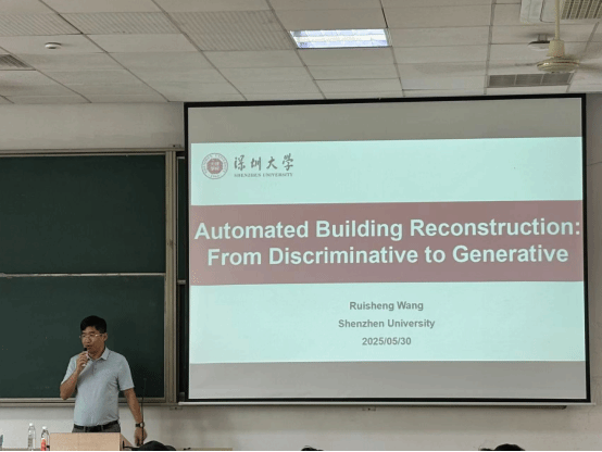 2025年5月30日,计算机工程学院在建发楼0220教室举办了“数智赋能讲座系列”之“建筑物自动建模:从判别式到生成式”专题讲座。讲座由深圳大学的王瑞胜老师主讲,由计算机学院的苏锦河老师主持。报告围绕基于LiDAR点云的大规模建筑物三维重建研究展开,系统介绍了深度学习方法在城市建模场景中的应用进展及技术突破。