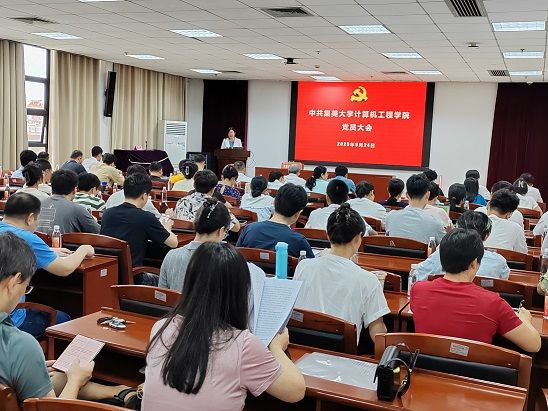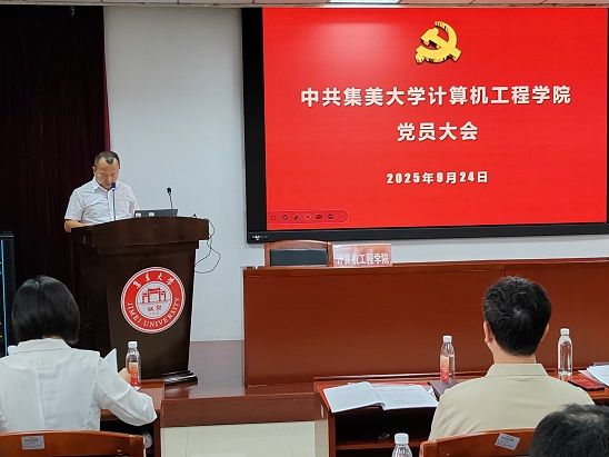9月24日下午,中国共产党集美大学计算机工程学院党员大会在陆大楼501A会议室举行。会议由学院党委副书记戴贵芬主持,全体党员出席会议。