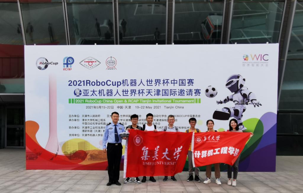 在2021 RoboCup机器人世界杯中国赛大学组比赛中,我院徐向东、郑家雯、李剑铭、李夏萌四位同学组成集美大学JMURobot1代表队,在指导老师王罡、带队老师王丰、陈鲁琳的带领下,斩获RoboCup足球机器人--仿真3D组一等奖。