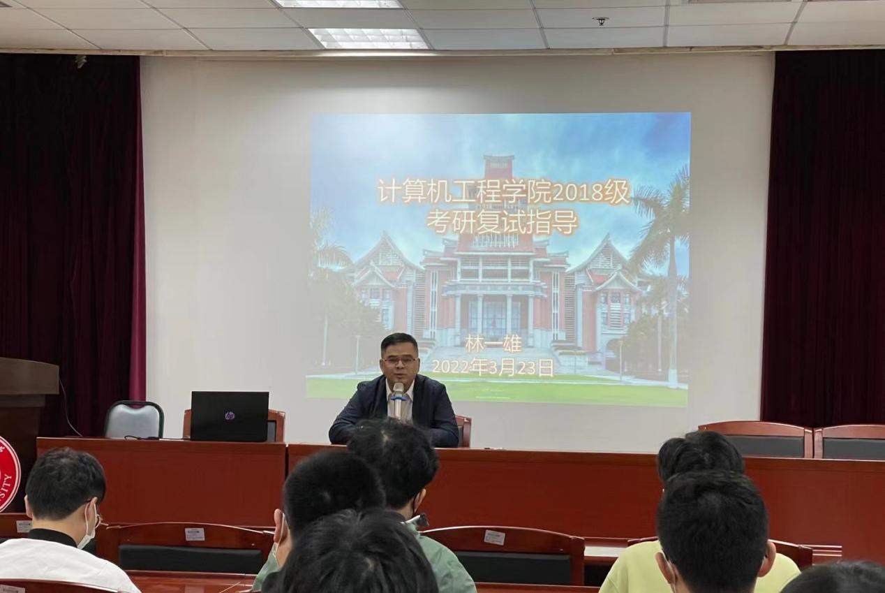 为切实提高学生复试备考效果,近日计算机工程学院分别举办线上、线下考研复试指导讲座。指导讲座由毕业班辅导员庄振杰主持,院长王宗跃教授、院党委副书记叶烽、硕士生导师蔡国榕教授、院团委副书记林一雄参加活动。