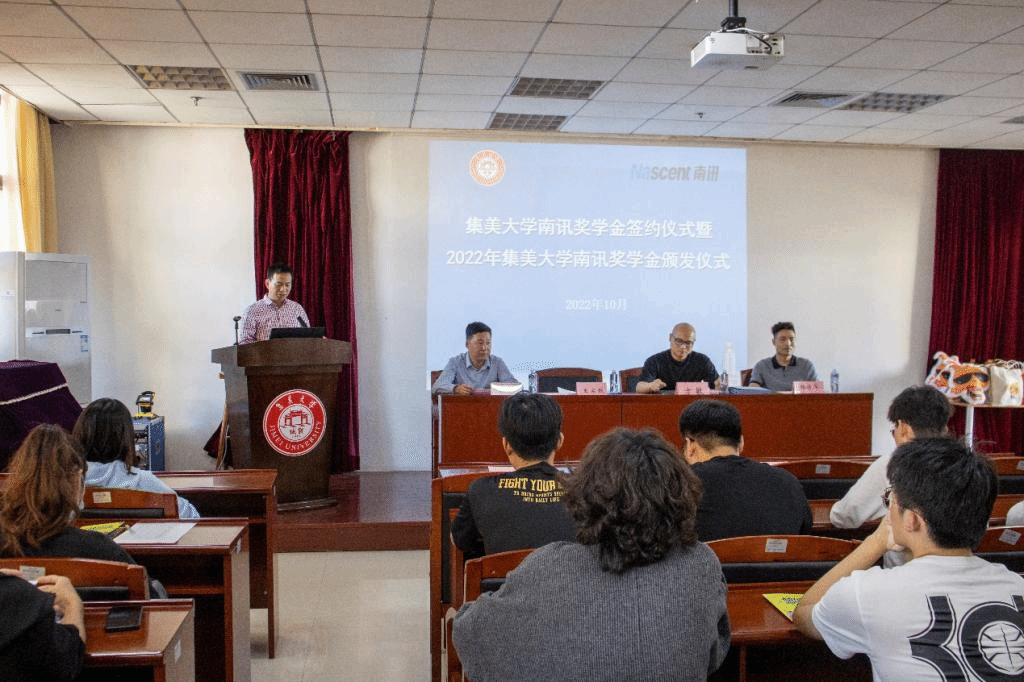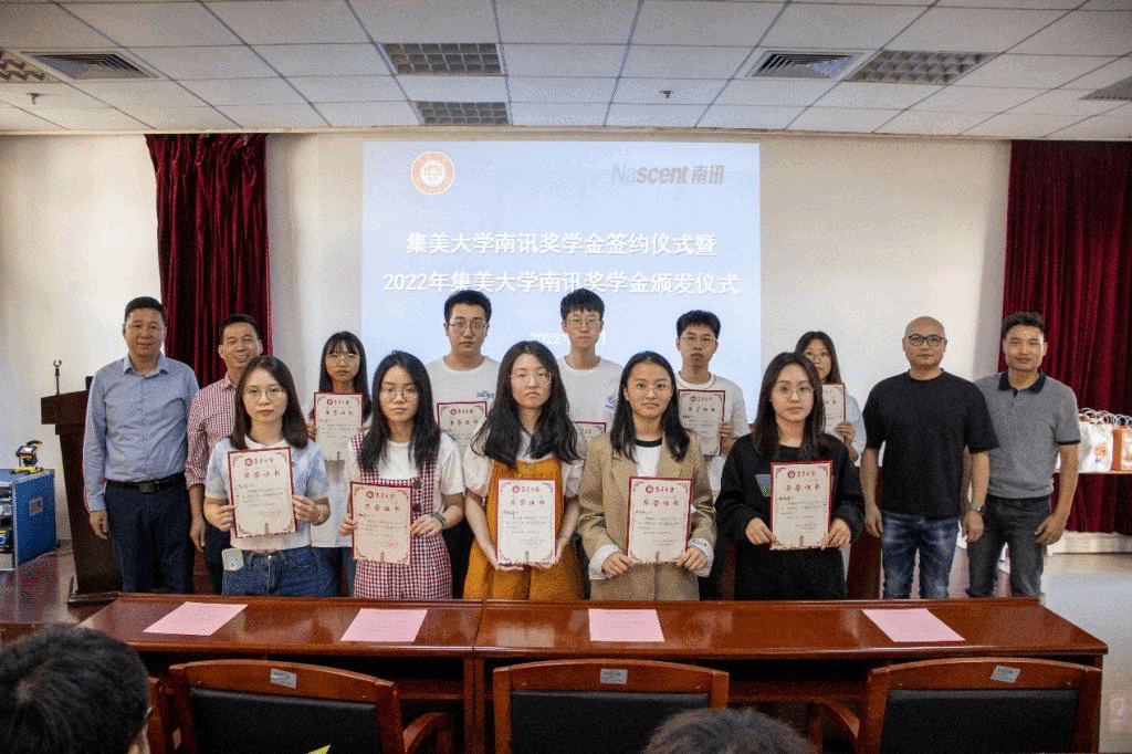 10月26日下午,集美大学南讯奖学金签约仪式暨2022年集美大学南讯奖学金颁发仪式在陆大楼501会议室举行。厦门南讯股份有限公司副总裁&创始人方敏、学院院长王宗跃、各年级辅导员以及学生代表参加仪式。仪式由学院党委副书记叶烽主持。