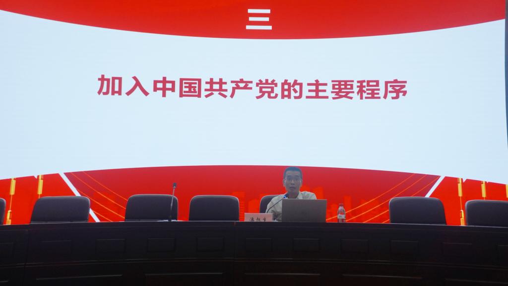 潘旭生向同学们深刻阐释了入党动机和入党初心的重要内涵,并从端正入党动机、发展党员程序及如何撰写入党申请书等方面向同学们讲述了如何积极准备入党。他鼓励同学们要提高思想觉悟、增强服务意识,不忘初心、牢记使命,以党员的标准严格要求自己,以实际行动争取早日加入中国共产党。