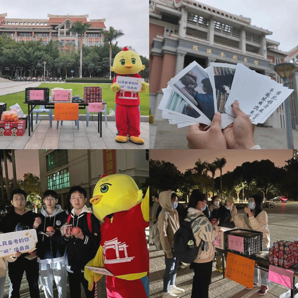 2024年全国硕士研究生招生考试开考在即,为舒缓考研学子复习压力,激励考研学子斗志,帮助考研学子坚定信心,12月17日,计算机工程学院分别在陈延奎图书馆和嘉庚图书馆广场处设考研助力点,为考研学子们送上承载美好寓意的考研礼物、记录他们努力备考模样的照片、送上吉祥物小智的暖心抱抱,希望他们能在考试中发挥最好的水平,实现自己的梦想。