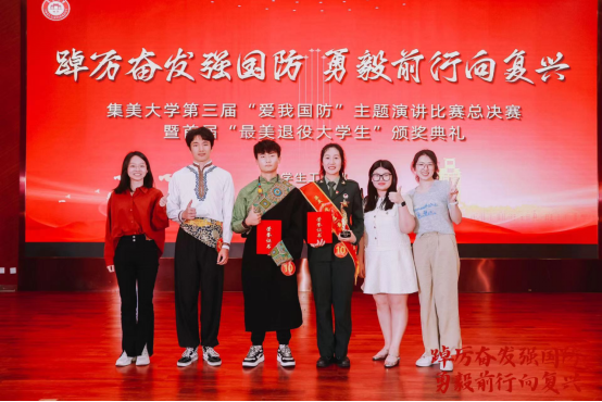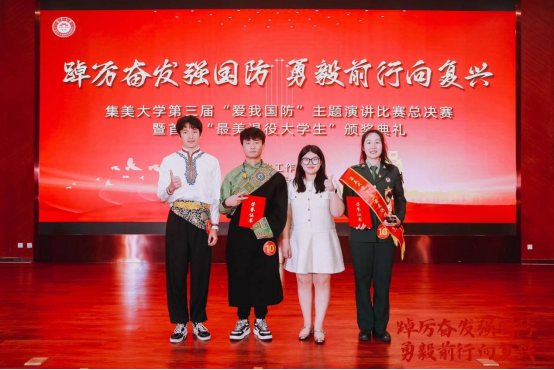 4月17日下午,集美大学第三届“爱我国防”主题演讲比赛暨最美退役大学生表彰大会于尚大楼105火热开展,我院退役大学生赵玥滢及23级学生力宪加、哈力木拉代表我院参加决赛并荣获一等奖。